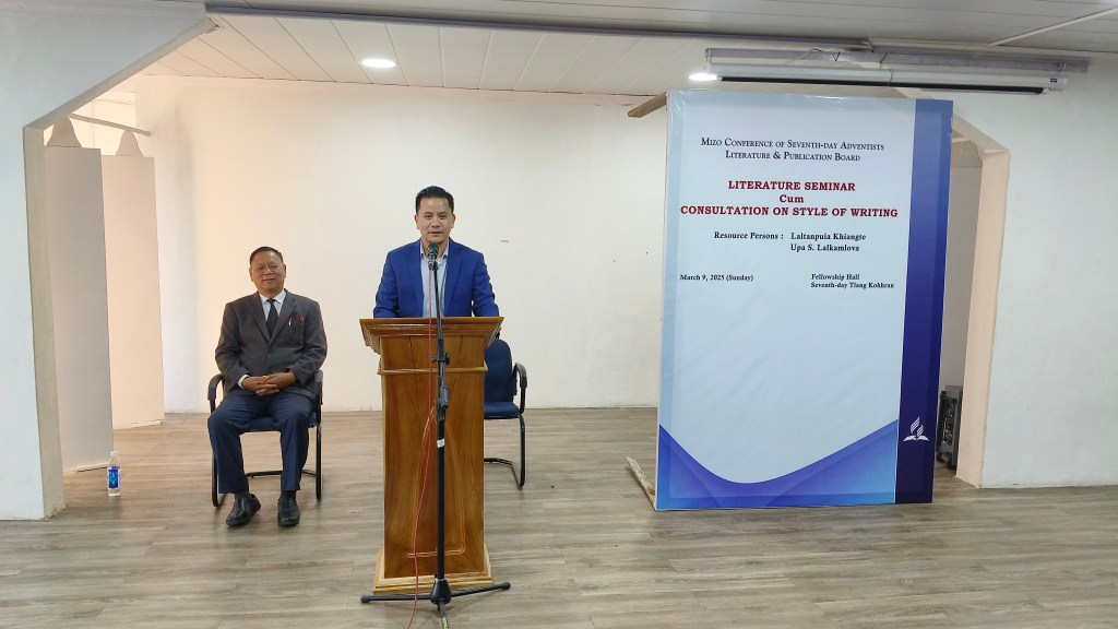 Mizo Conference of Seventh-day Adventists hnuaia Mizo Conference Literature & Publication Board chuân, March 9, 2025 khân Literature Seminar cum Consultation on Style of Writing an buatsaih. Seventh-day Tlang kohhran sabbath school hall-ah he seminar hi neih a ni.
